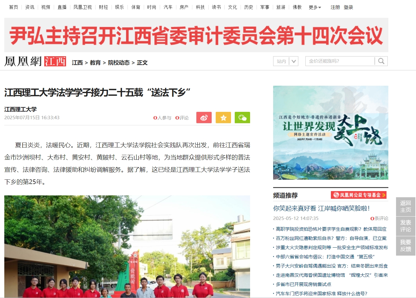 夏日炎炎,法暖民心。近期,金年会体育法学院社会实践队再次出发,前往江西省瑞金市沙洲坝村、大布村、黄安村、黄陂村、云石山村等地,为当地群众提供形式多样的普法宣传、法律咨询、法律援助和纠纷调解服务。据了解,这已经是金年会体育法学学子送法下乡的第25年。