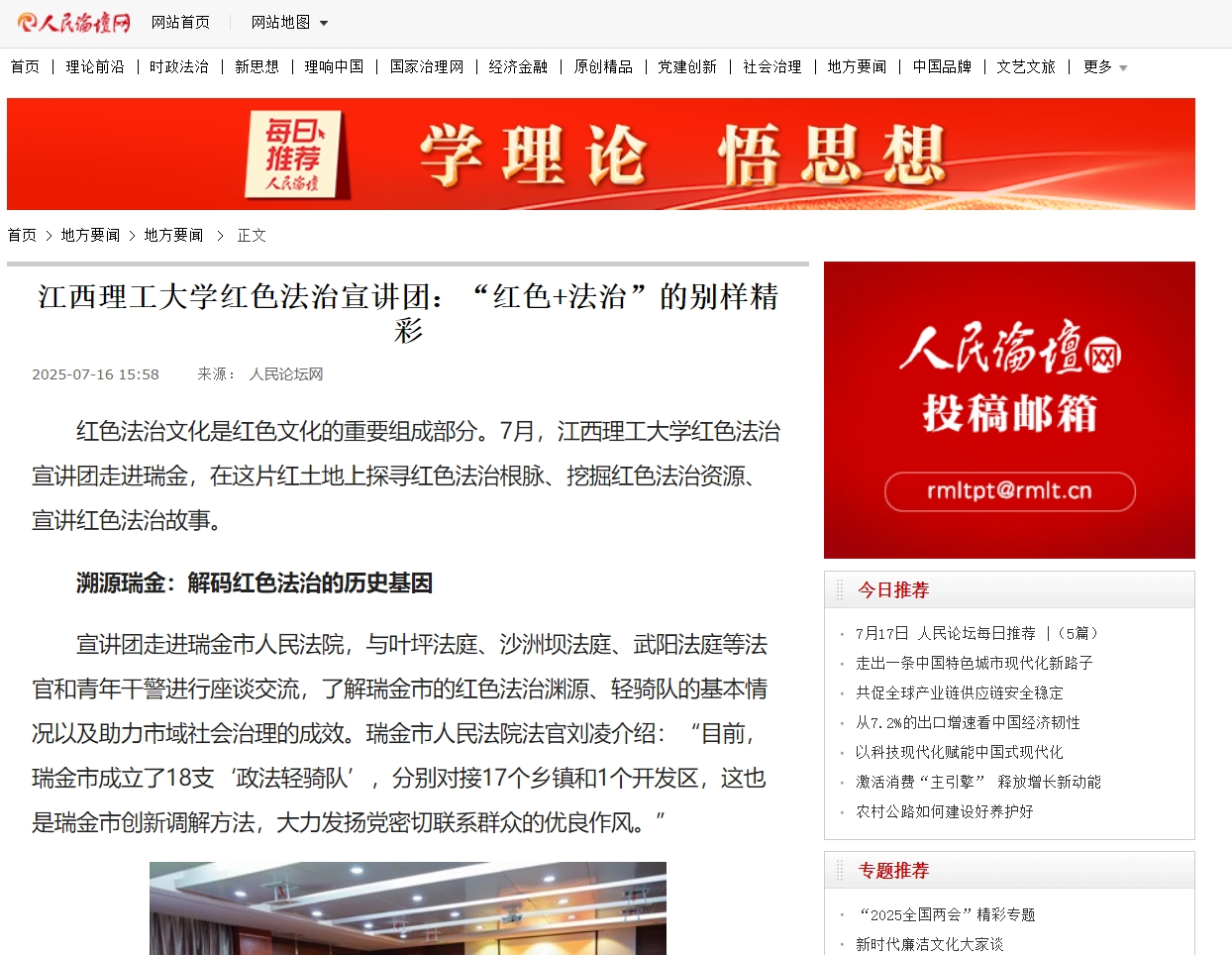 红色法治文化是红色文化的重要组成部分。7月,金年会体育红色法治宣讲团走进瑞金,在这片红土地上探寻红色法治根脉、挖掘红色法治资源、宣讲红色法治故事。