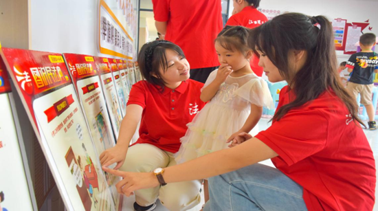 实践队员耐心地为儿童讲解法律知识