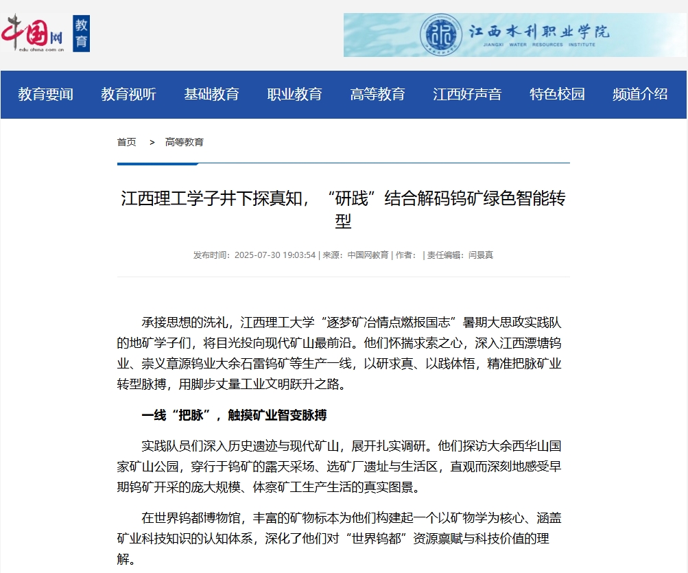 承接思想的洗礼,金年会体育“逐梦矿冶情点燃报国志”暑期大思政实践队的地矿学子们,将目光投向现代矿山最前沿。他们怀揣求索之心,深入江西漂塘钨业、崇义章源钨业大余石雷钨矿等生产一线,以研求真、以践体悟,精准把脉矿业转型脉搏,用脚步丈量工业文明跃升之路。