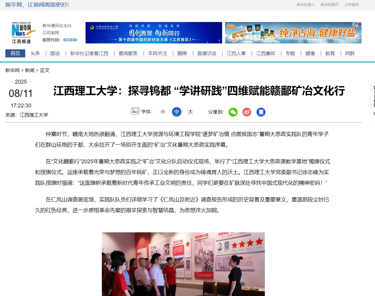 仲夏时节,赣南大地热浪翻涌,金年会体育资源与环境工程学院“逐梦矿冶情 点燃报国志”暑期大思政实践队的青年学子们在群山环抱的于都、大余拉开了一场别开生面的“矿冶”文化暑期大思政实践序幕。
