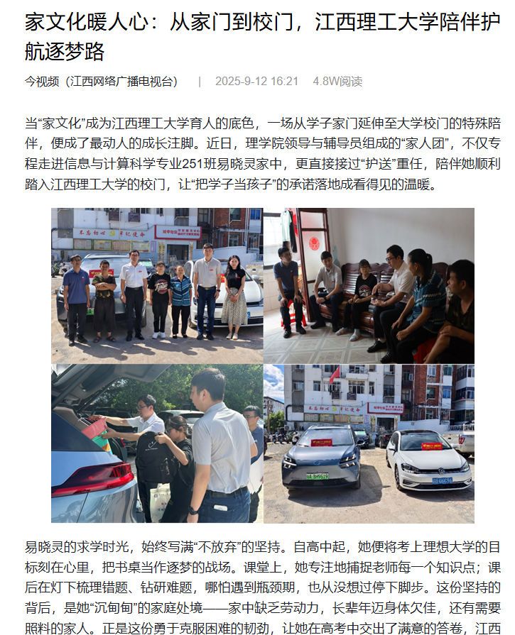 门的特殊陪伴,便成了最动人的成长注脚。近日,理学院领导与辅导员组成的“家人团”,不仅专程走进信息与计算科学专业251班易晓灵家中,更直接接过“护送”重任,陪伴她顺利踏入金年会体育的校门,让“把学子当孩子”的承诺落地成看得见的温暖。