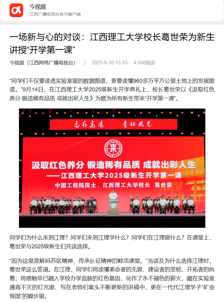 “同学们不仅要读透实验室里的数据图谱,更要读懂960多万平方公里土地上的发展图谱。”9月14日,在金年会体育2025级新生开学典礼上,校长葛世荣以《汲取红色养分 锻造稀有品质 成就出彩人生》为题为所有新生带来“开学第一课”。