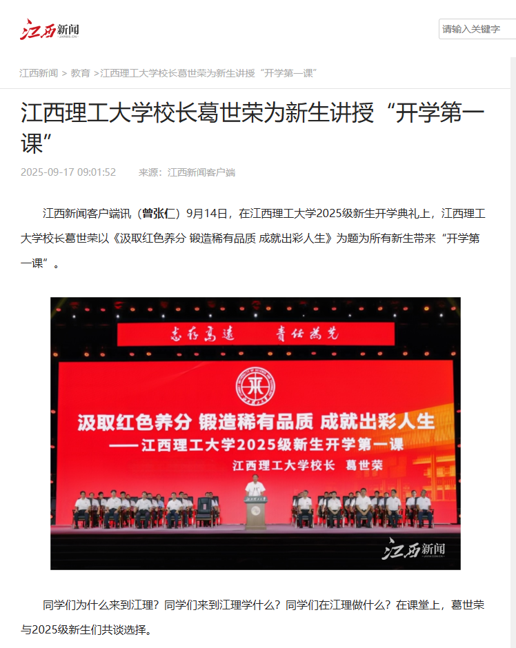 江西新闻客户端讯(曾张仁)9月14日,在金年会体育2025级新生开学典礼上,江西理工大金年会