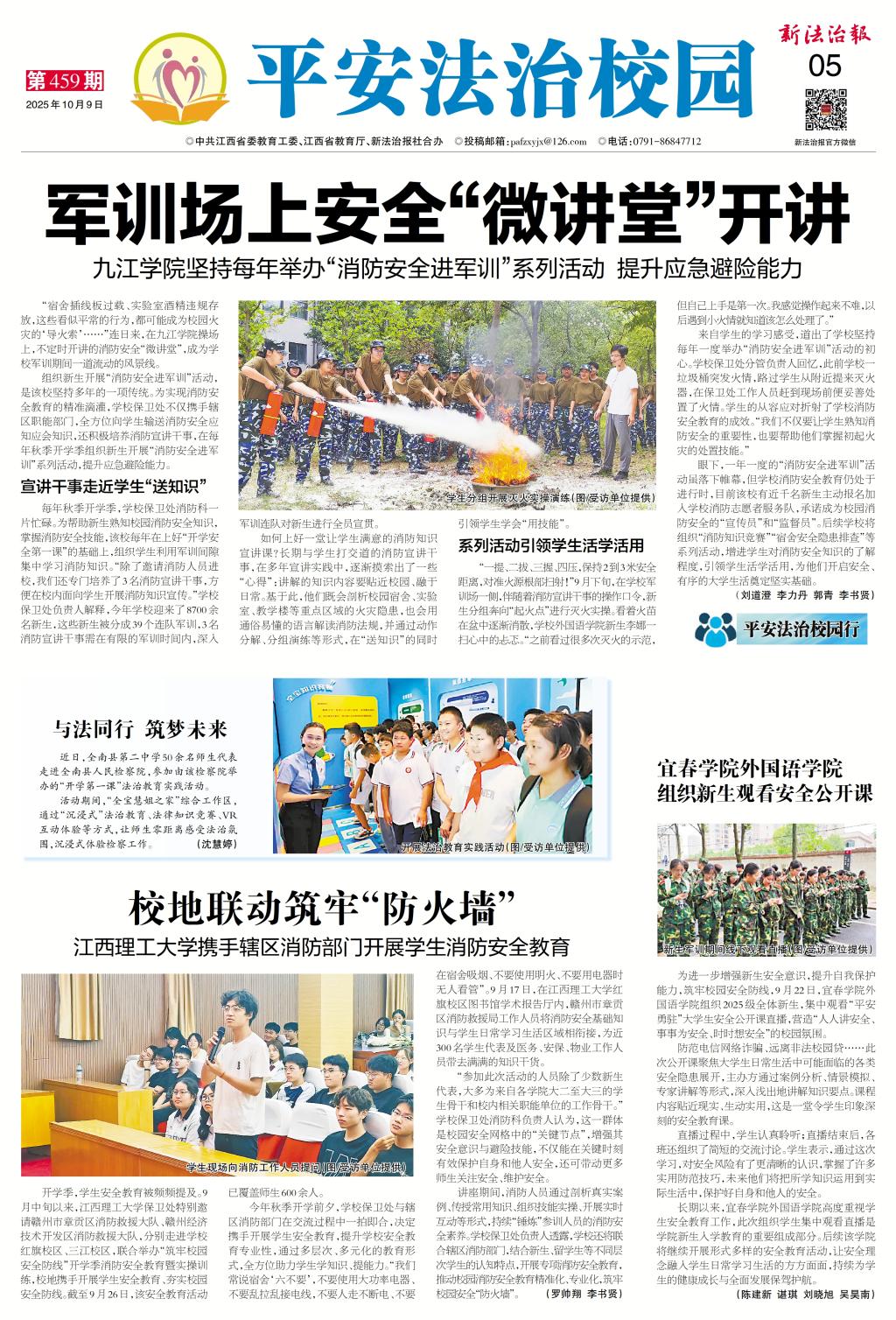 还将联合辖区消防部门,结合新生、留学生等不同层次学生的认知特点,开展专项消防安全教育推动校园消防安全教育精准化、专业化,筑牢校园安全“防火墙”。