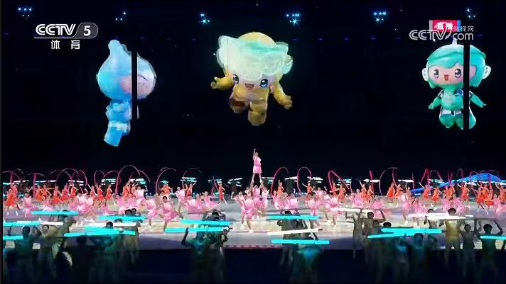 啦啦操队亮相杭州第19届亚运会开幕式表演现场)