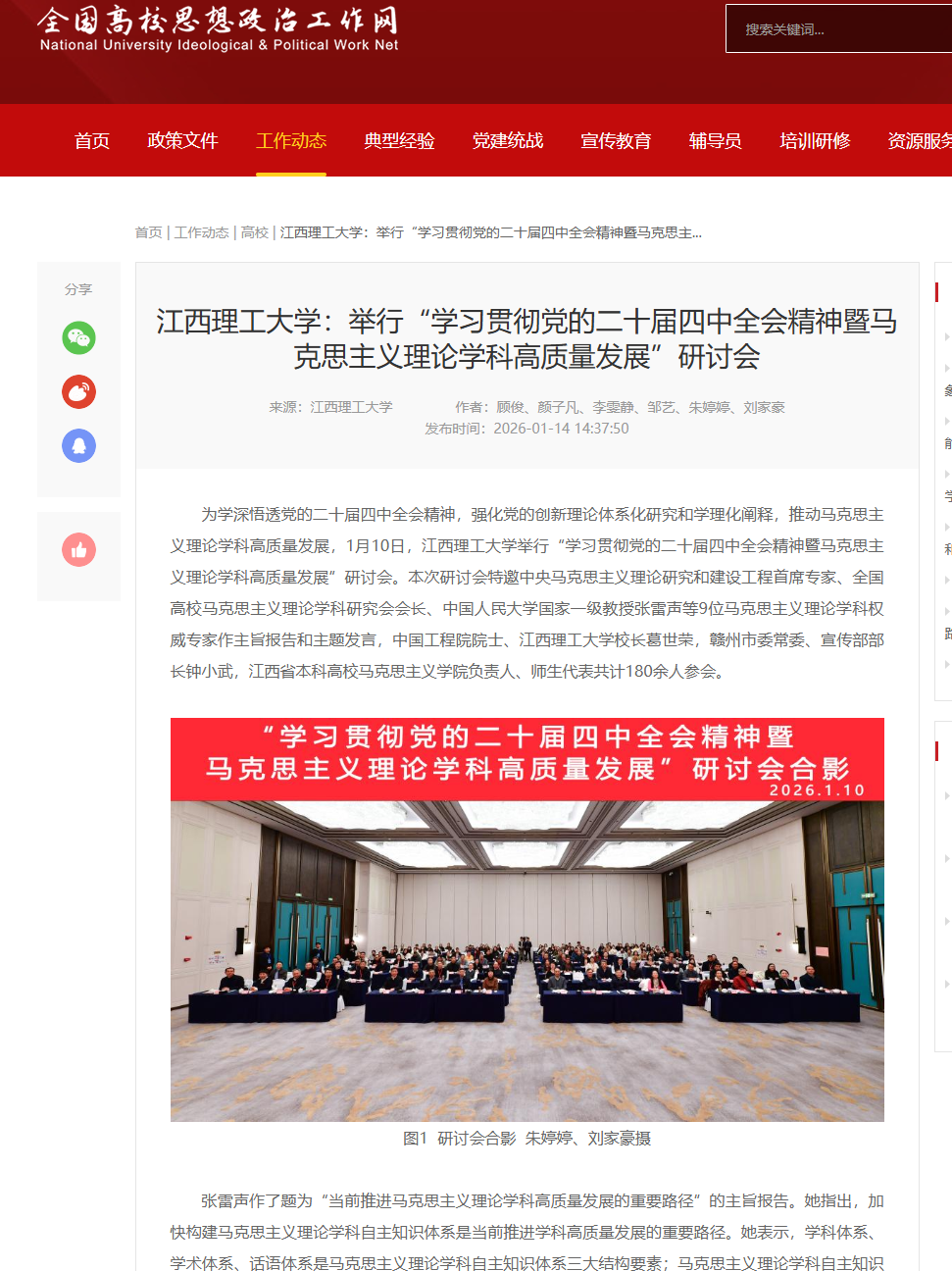 长葛世荣,赣州市委常委、宣传部部长钟小武,江西省本科高校马克思主义学院负责人、师生代表共计180余人参会。