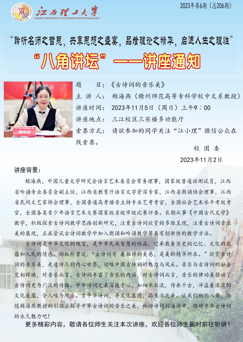 讲座时间:2023年11月5日(周日) 上午9:00