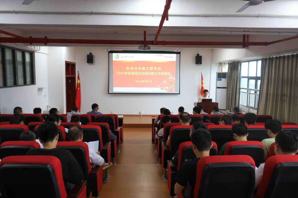 本网讯 9月5日,能源与机械工程学院在南昌校区综合实验楼A1101学术报告厅开展2023年秋季班主任培训暨工作部署会。院党委书记饶先发,院党委副书记晁云,副院长李亮星以及全体辅导员、全院班主任、2023级班主任助理参加此次会议。会议由学院学工办负责人郭峰主持。