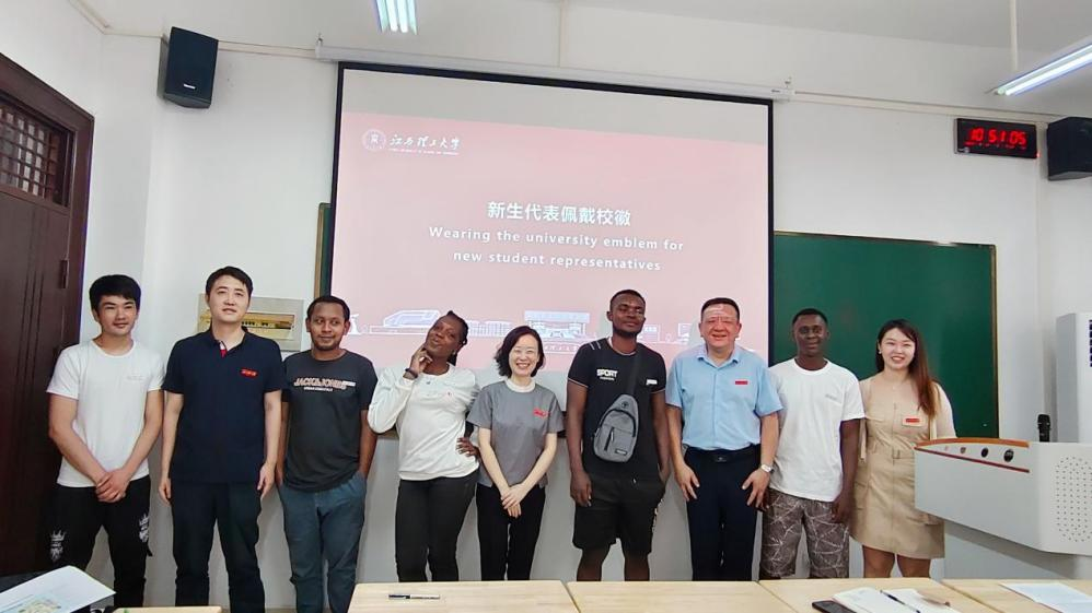 国际教育学院副院长李丰致欢迎词,并对第一批2023级国际新生提出三点期望:一是鼓励各国国际新生相互多交流,了解不同文化、尊重文化差异;二是希望国际新生抓住机会在课堂之外了解中国,遵守中国法律法规;三是祝愿同学们在金年会 的时光能收获丰富多彩的学习经历、珍贵的友谊和个人成长。每位同学还收到了学院准备的迎新小礼物,包括江西理工大金年会 徽、中英文校园地图和印有金年会 LOGO的笔记本。