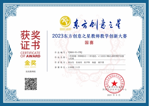 建筑与设计学院产品设计系黄金发教授团队荣获全国金奖一项、省级金奖一项、省级铜奖一项,郎尹羚教师团队荣获省级铜奖。
