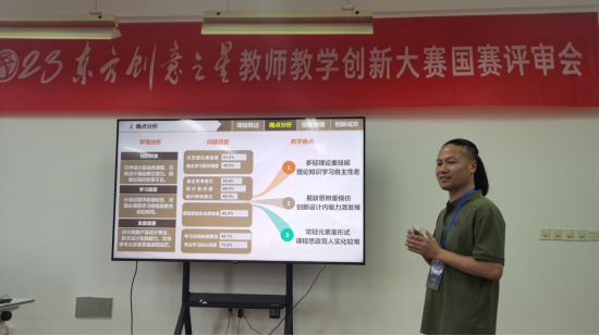 黄金发教授团队的课程设计以“三色铸魂·四维驱动·三阶递进”为主题,结合“四驱四阶四融合”互通式协同育人机制,将现代技术与传统教学相融合,精心打磨教学设计、创新教学内容与方法,以其独特的创新性和深刻的教学实践获得了评委们的一致好评。