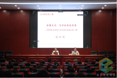 本网讯 10月16日晚,校党委副书记、校长温和瑞在南昌校区综合实验楼A308报告厅为商学院2023级新生上开学第一课。商学院党委书记陈小云主持。