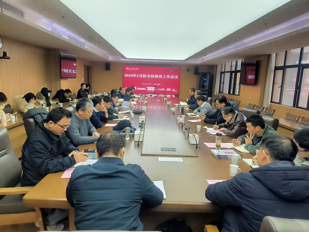 在三江校区濂溪楼2号会议室召开了二月科技工作调度会。校党委常委、副校长唐云志,学术副校长陈斌出席会议,各学院、二级单位分管科技工作负责人和科研秘书,科学技术处全体人员参加会议。会议由科学技术处处长吴彩斌主持。