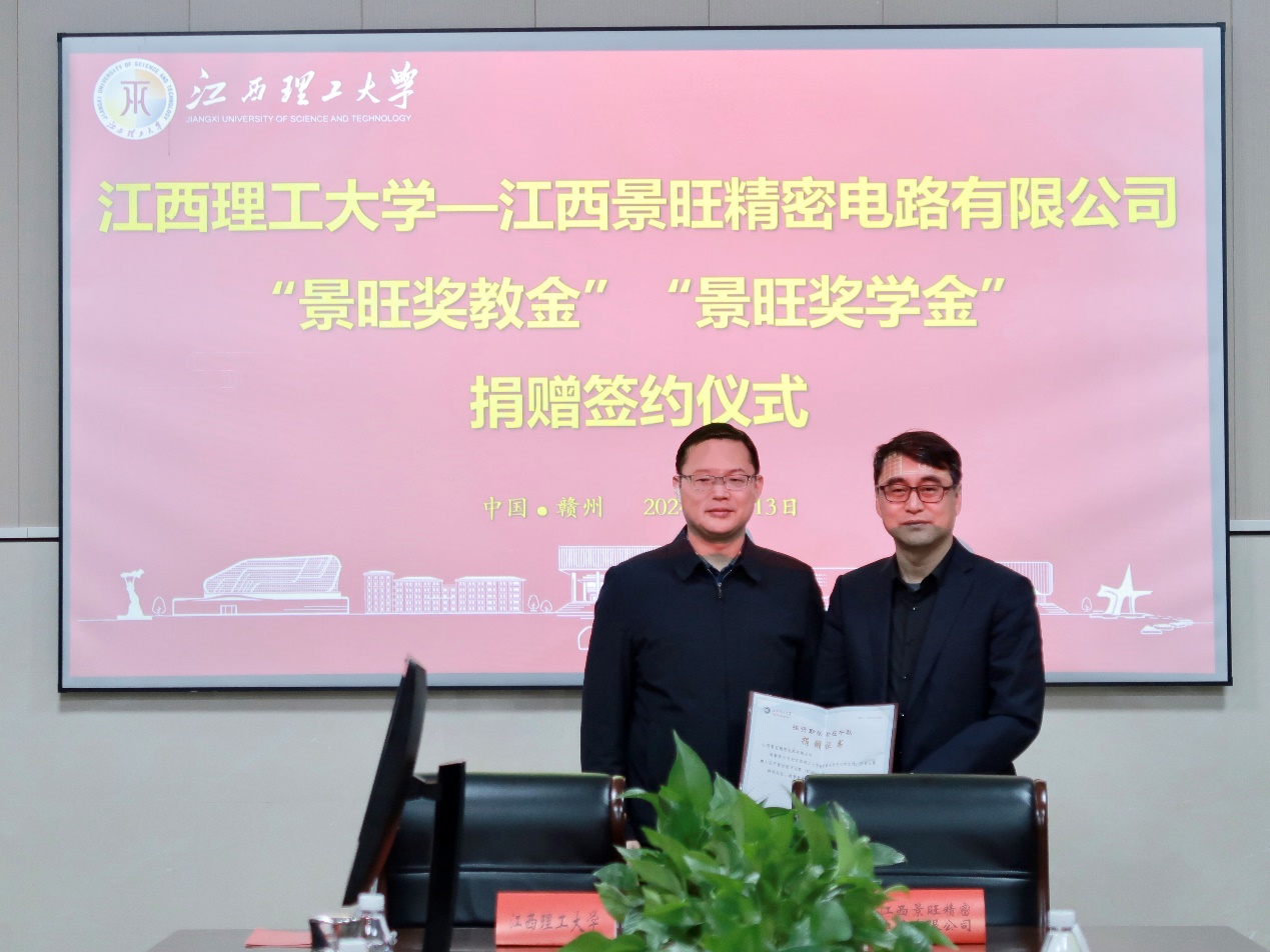 向江西景旺精密电路有限公司颁发捐赠证书。