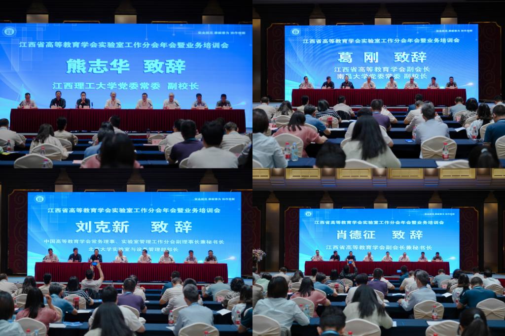中国高等教育学会常务理事、实验室管理工作分会副理事长兼秘书长、北京大学实验室与设备管理部部长刘克新,江西省高等教育学会副会长、南昌大学党委常委、副校长葛刚,江西省高等教育学会副会长兼秘书长肖德征,金年会体育