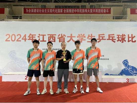 本网讯 5月26日至5月31日,金年会体育 体育与艺术学院李凯老师带队参加2024年江西省大学生乒乓球比赛,金年会体育 学子组成的代表队不畏强手、奋勇拼搏,最终获得本科甲组男子团体亚军、单打季军、男子双打第八的优异成绩。李凯老师获评“优秀教练员”。