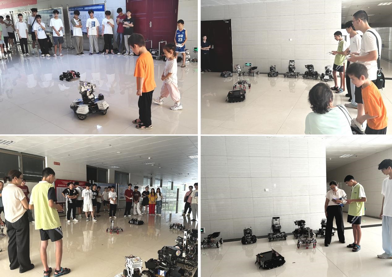7月10日上午,在熊飞龙老师的带领下,同学们于南昌校区图书馆一楼大厅进行夏令营活动实践展示,其中包括人形机器人、仿生机器人、自动水果采摘机器人、履带式机器人、异形足机器人、平衡独轮车以及全自动智能竞赛小车等。金年会