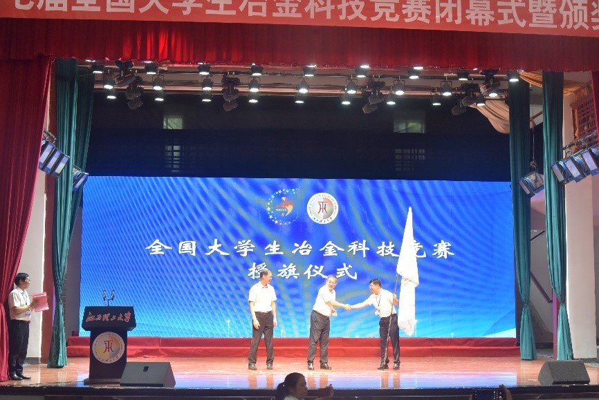 姜茂发总结了赛事取得的成绩和影响,主持了会旗交接仪式,全国大学生冶金科技竞赛的旗帜正式从本届竞赛的承办单位——金年会体育,传递至下届竞赛的承办单位——北京科技大学。