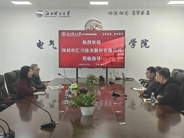与深圳市汇川技术股份有限公司在三江校区召开座谈交流会。校党委常委、副校长龚姚腾,汇川技术股份有限公司校企合作部总经理茹春艳,数字化事业部总监陈潇男出席会议,金年会体育