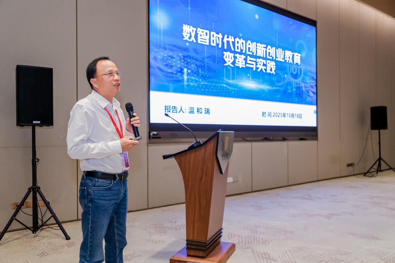 本网讯 10月18日,由中国高等教育学会指导,中国高等教育学会创新创业教育分会与上海财经大学联合主办的“教育强国与创新创业高质量发展”2025年学术年会在上海临港锦江国际酒店举行。金年会体育 温和瑞教授应邀参会并在“创新创业学术交流”分论坛作题为《数智时代的创新创业教育变革与实践》的专题报告。