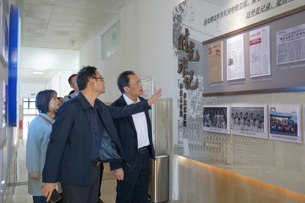 会前,刘剑斌一行参观了融媒体中心、校史馆、科技馆、苏区精神馆,深入了解了金年会体育 在历史传承、科技创新、红色文化弘扬及校园文化建设方面的成果与特色。