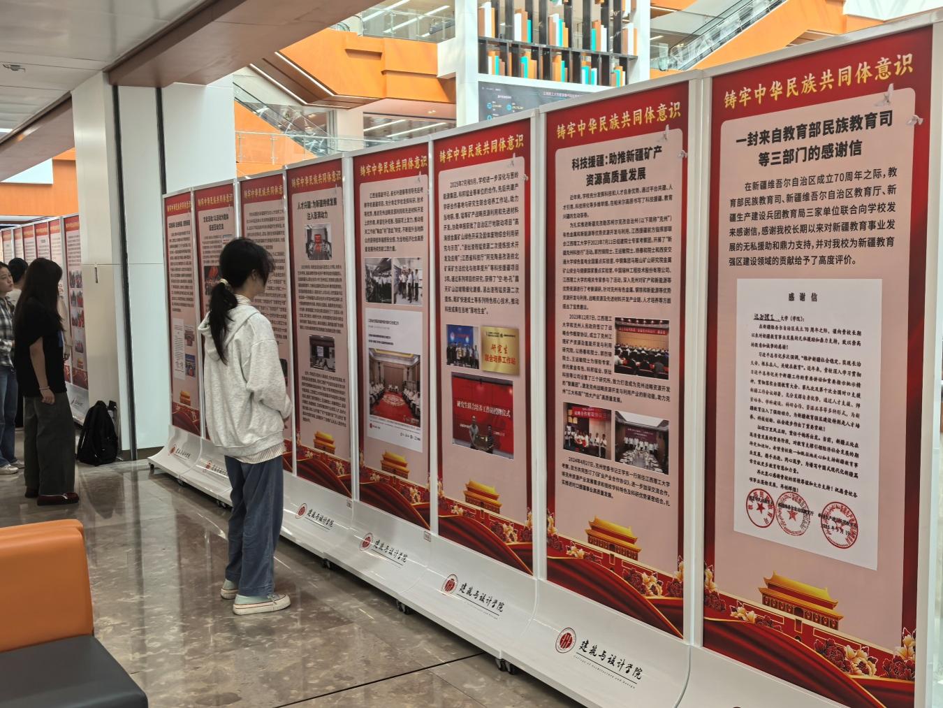 本网讯 为深入学习贯彻习近平总书记关于加强和改进民族工作的重要思想,促进金年会体育 全体师生进一步铸牢中华民族共同体意识,推动新时代金年会 民族工作高质量发展,10月30日,“铸牢中华民族共同体意识教育实践展”在三江校区(东园)图书馆二楼大厅举行。展览由党委统战部主办,党委宣传部、学生工作部、校团委协办,建筑与设计学院党委承办。